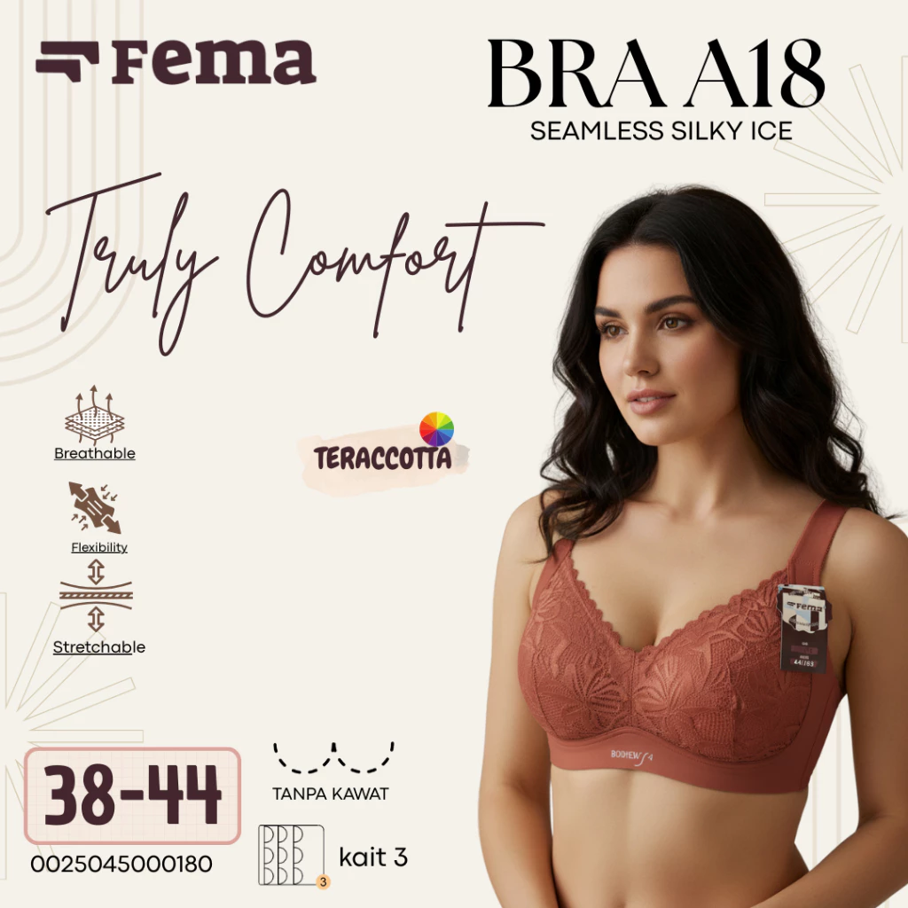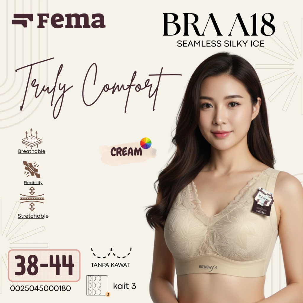 Dengan teknologi seamless (tanpa jahitan), bra FEMA memberikan tampilan mulus tanpa garis menonjol di balik pakaian. Cocok dipakai sehari-hari, terutama saat musim panas, karena bahan ice silk-nya mampu menyerap keringat dengan baik dan menjaga kulit tetap sejuk sepanjang hari.
