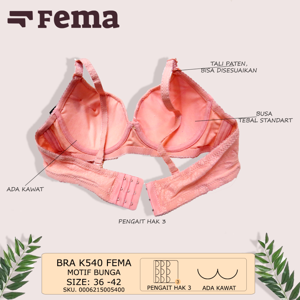 FEMA Official Shop Ecer 1 Pcs BH Bra K540 Motif Bunga Kawat